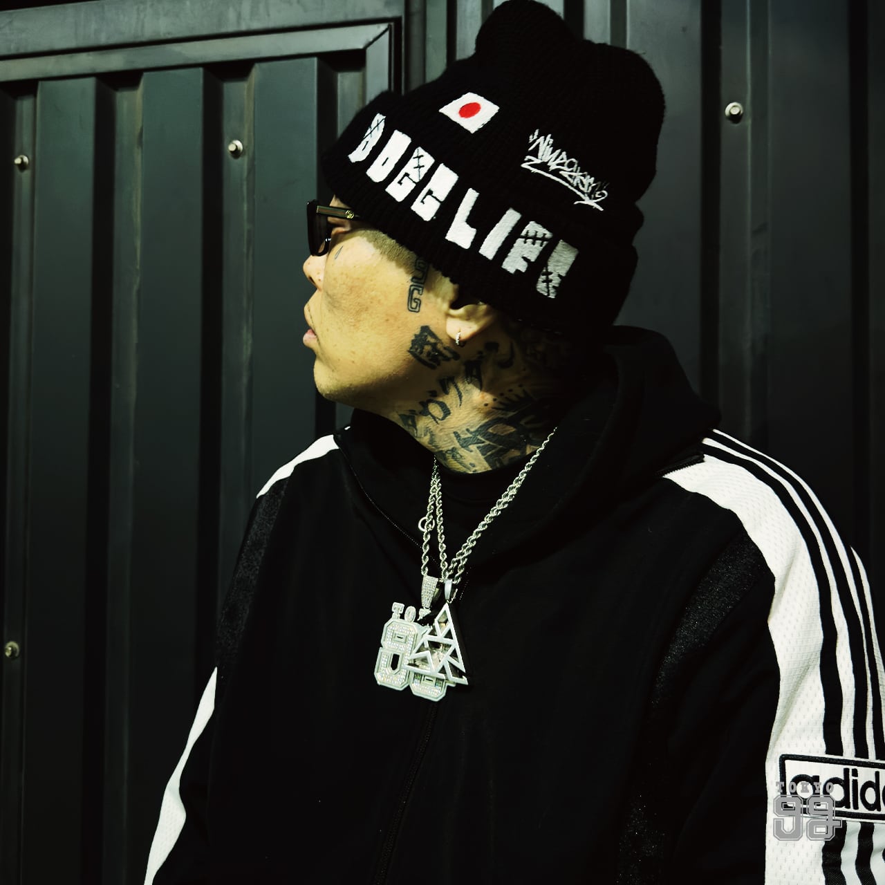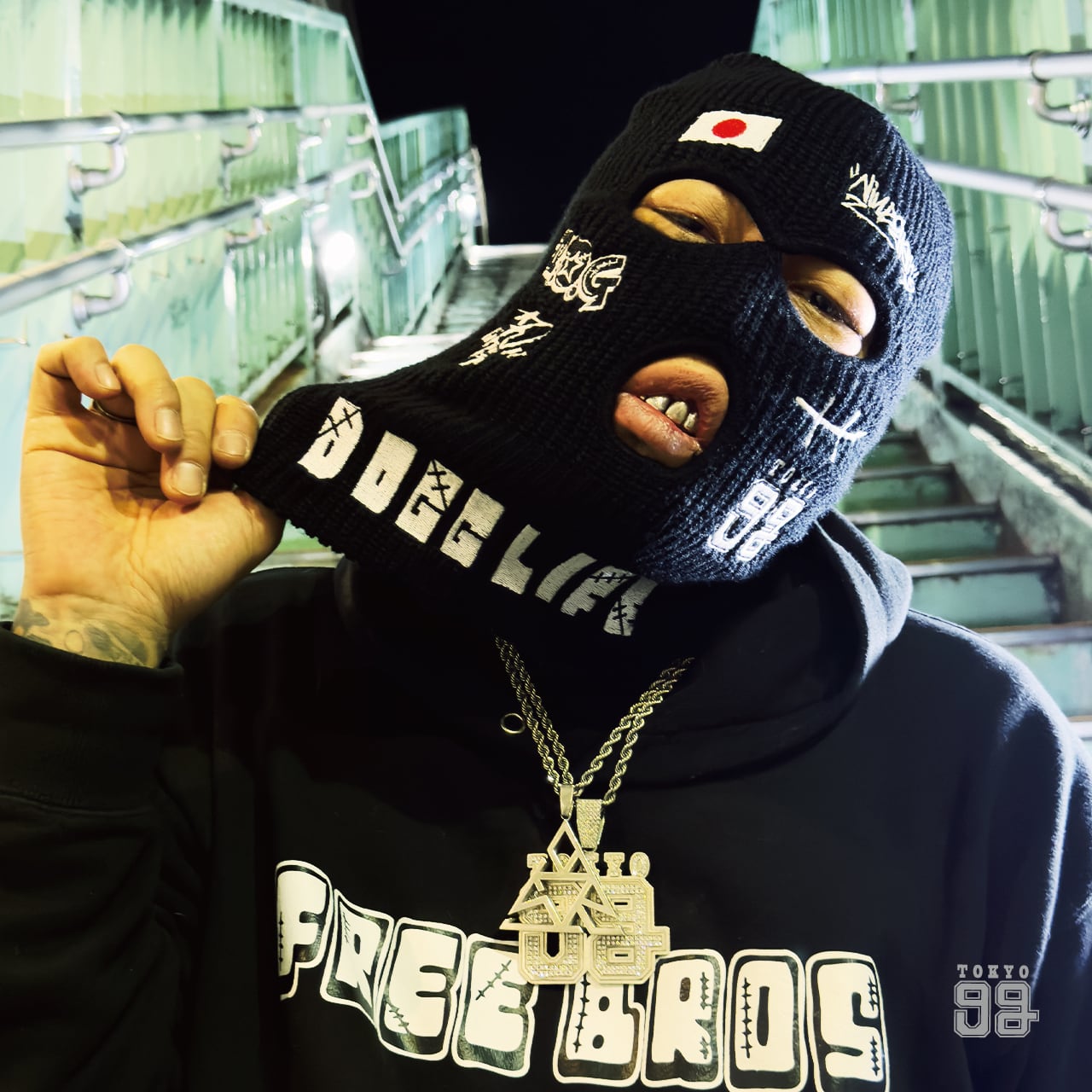 9g歴代のロゴデザインを刺繍したバラクラバ(目出し帽)。