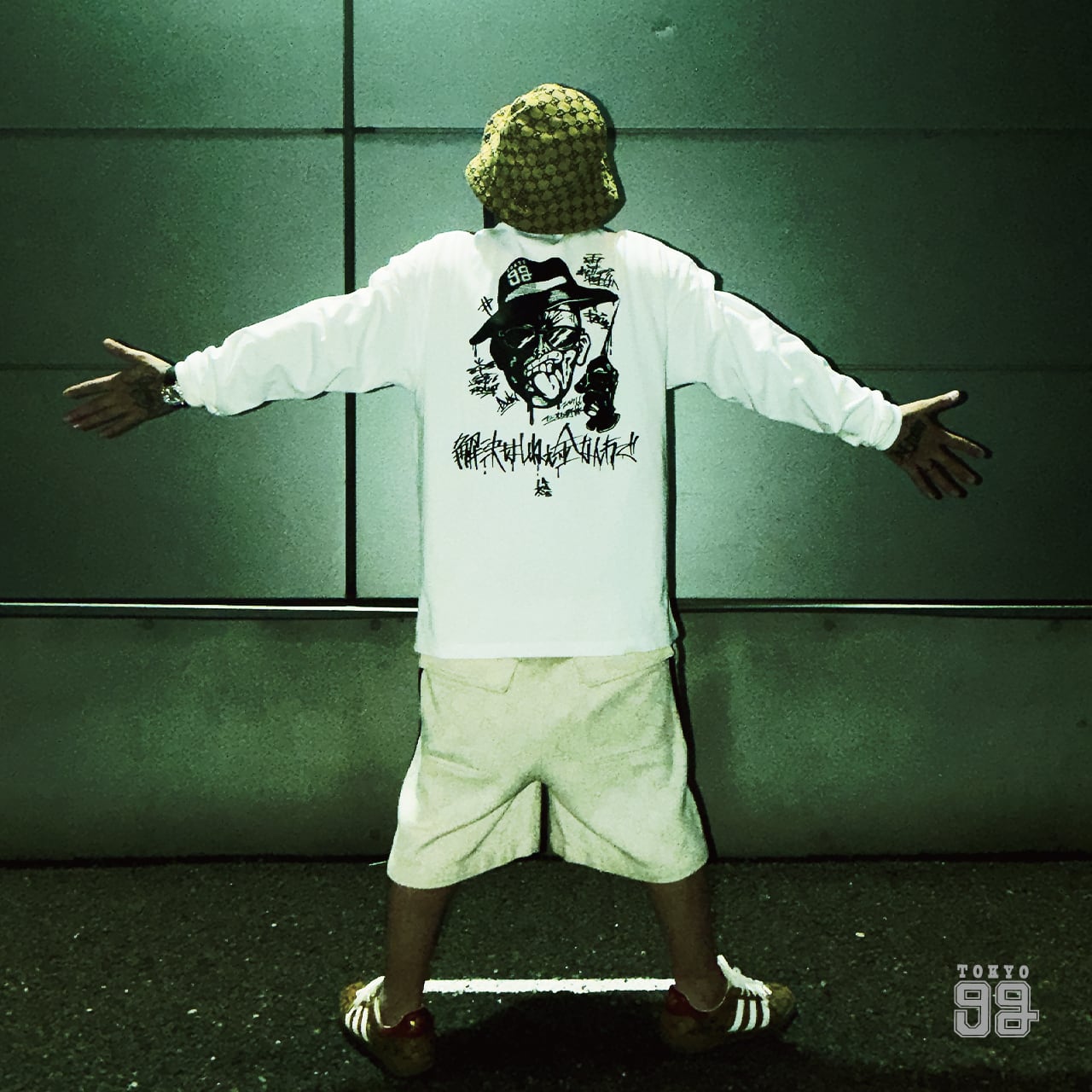 D.O-Black Out feat. RalphのD.Oのパンチライン「うるせぇ金払え」「解決はしねぇ金なんかで」をイラストと共にプリントした Long T-shirt!!